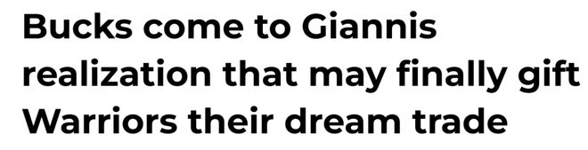 北京时间1月26日,据NBA名记Fischer报道,雄鹿意识到围绕字母哥打造争冠阵容的道路走不通,与字母哥分手或许已经成为当下的最优解。湾区媒体转发这一消息,并感慨道:字母哥一直是金州勇士队梦寐以求的交易目标,勇士的这一夙愿或许正迎来前所未有的实现契机。