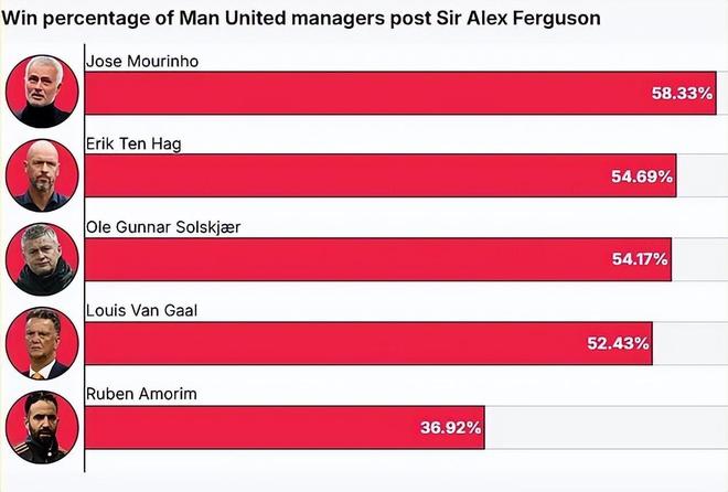 阿莫林下课没有什么可以抱怨,他是队史历任正式主帅中胜率最低的一个。但人们不禁怀疑:曼联主帅是不是真的成为一份「有毒」的工作。已经有超过10位不同主帅试图带领红魔重现往日辉煌,但最终均以失败告终。