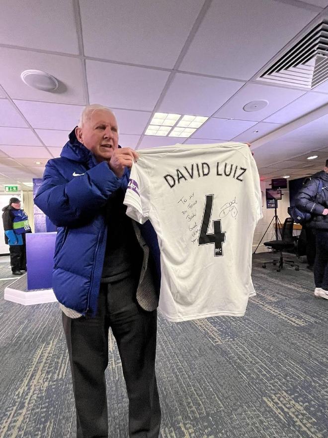 大卫-路易斯送签名球衣给退休员工,后者为切尔西工作了56年