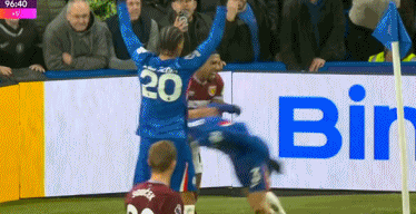或许是对于到手的胜利丢失感到不满,补时阶段,西汉姆联边锋特劳雷在边线附近恼羞成怒,身材健壮的他,直接把西班牙同胞库库雷利亚拽倒在地。